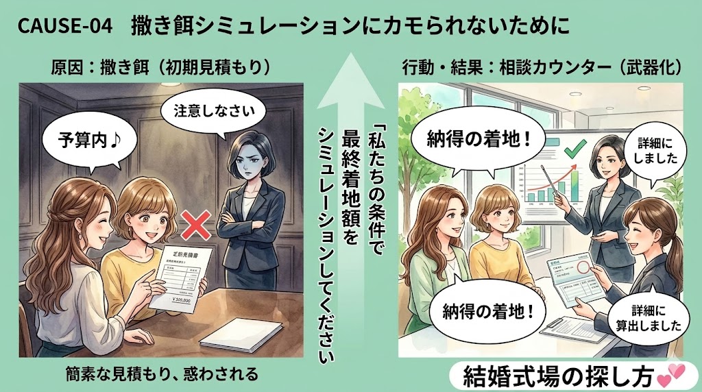 「結婚式の費用、シミュレーションでは予算内だったのに、本当にこの金額で挙げられるの?」