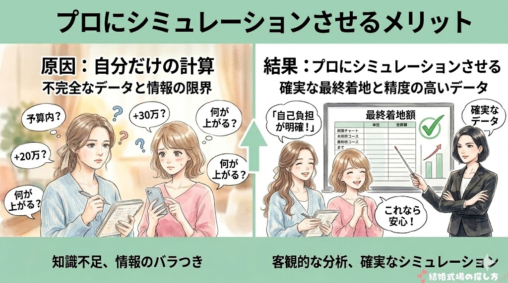大事なのは「式場に行く前に、中立な第三者にシミュレーションしてもらう」というステップを踏むこと。